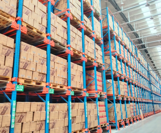 贯通式货架丨驶入式货架★货物存储通道亦为叉车储运通道,是存储密度较高的一种形式货架。★通常被用于品种较少但批量大,且对货物拣选要求不高的货物存储。★以普通叉车的提升高度,通廊货架层数为三层货物的常规方案计算,仓库的有效存储容量可增加100%以上,相比之下投资成本得到控制,效益显著提升。从全局存储成本计算,一般在三年内所增加存储容量效益即可抵销投资成本。★货物遵循先进后出原则, 适用大多数搬运机械储运作业。